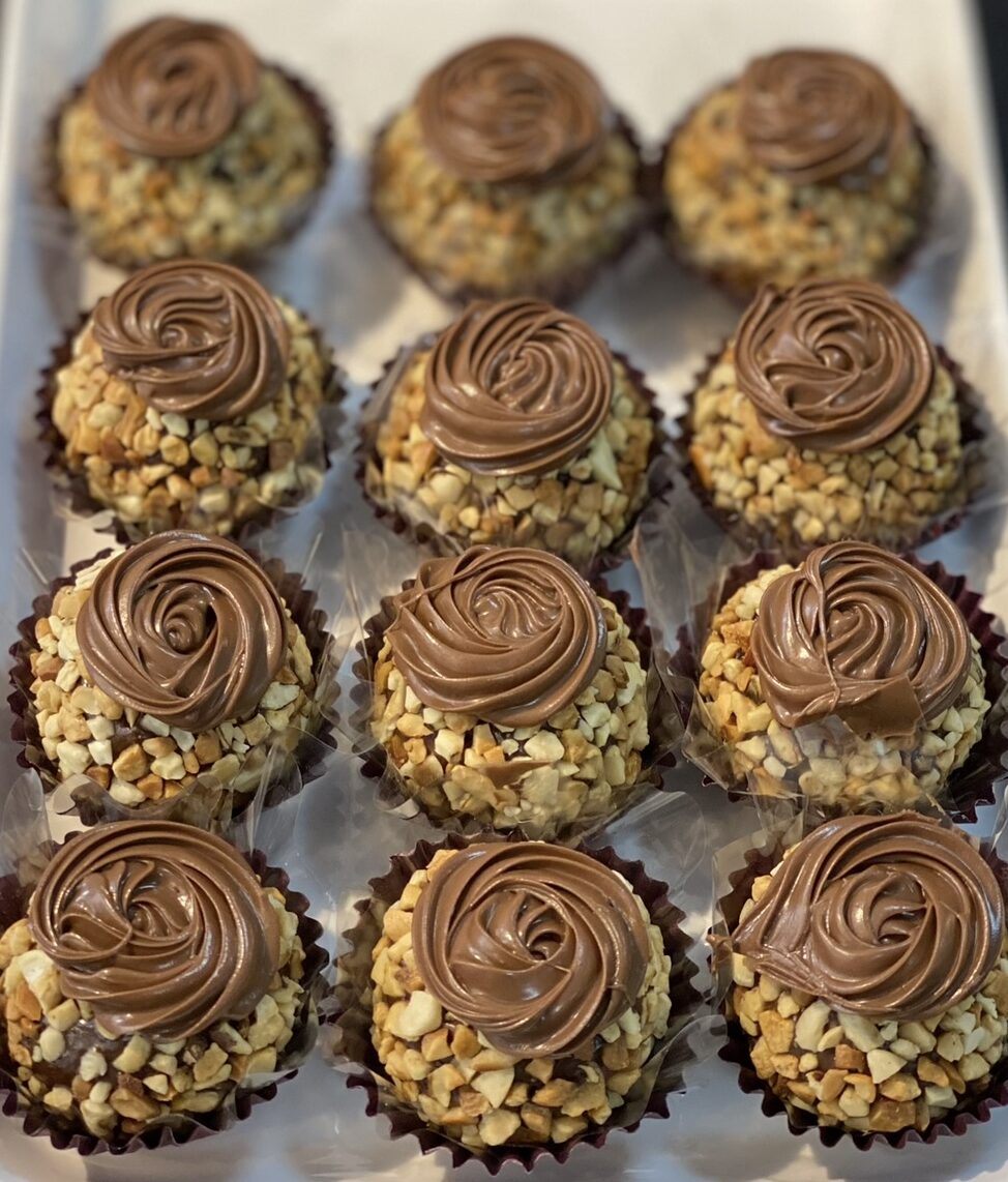 BRIGADEIRO DE CHOCOLATE COM CASTANHAS TRITURADAS E PITANGA DE NUTELLA